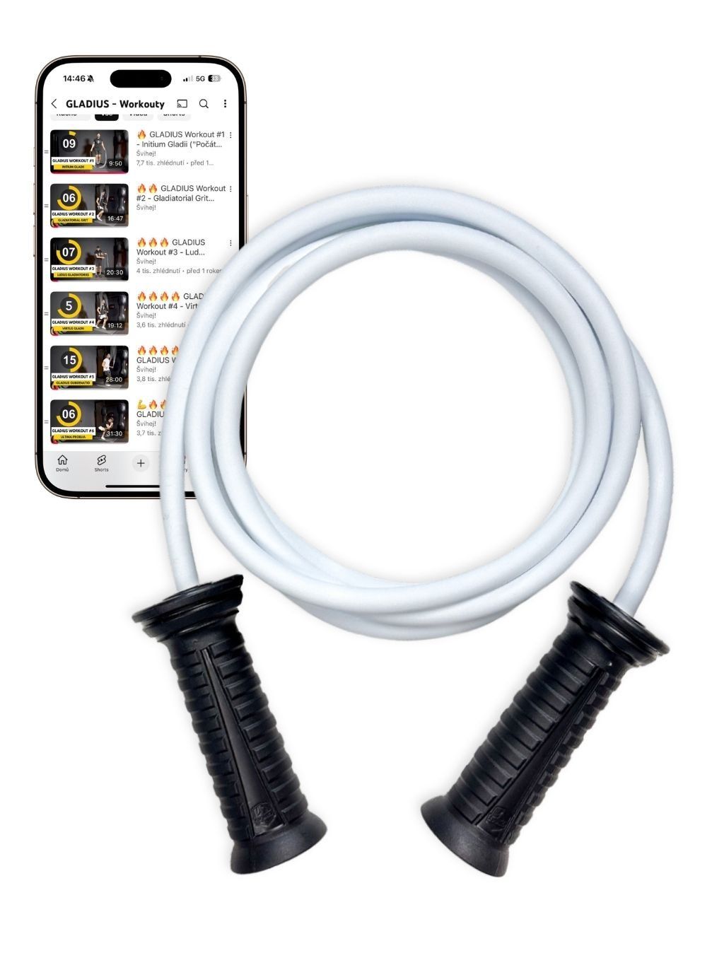 Gladius - Zátěžové švihadlo Těžší lanko vhodné pro rychlý a intenzivní trénink. 6 tréninků součástí balení.