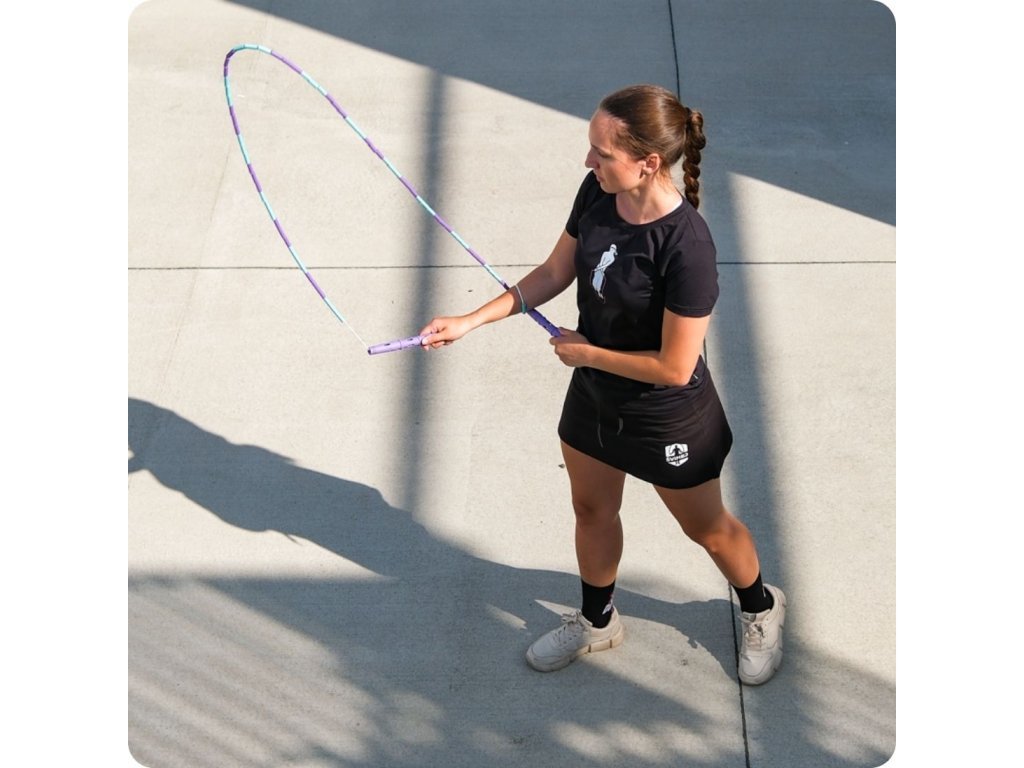 Švihadlo s korálky je trochu těžší do ruky a lehce pomalejší, takže lépe vnímáš švihadlo a dokážeš se s ním lépe učit nové věci a pilovat správnou techniku. Korálky se nekroutí, krásně drží tvar a zvládneš s nimi téměř cokoliv.