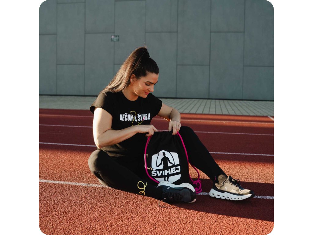 Černý sportovní vak se hodí na workout i k vodě a překvapí tě, kolik věcí se ti do něj vejde (flaška, reprák, švihadla, gumy...). ![]()