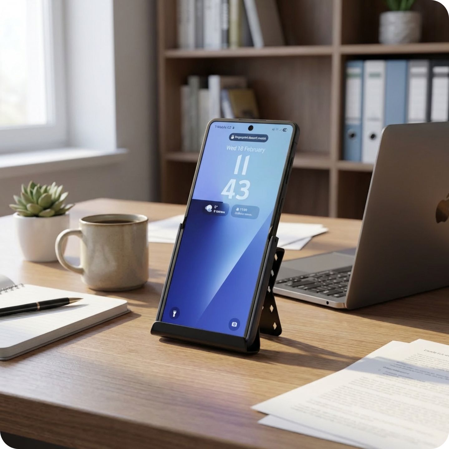 Stojánek na telefon na stůl - ideální na práci, videa, hovory nebo když chceš mít telefon hezky po ruce.