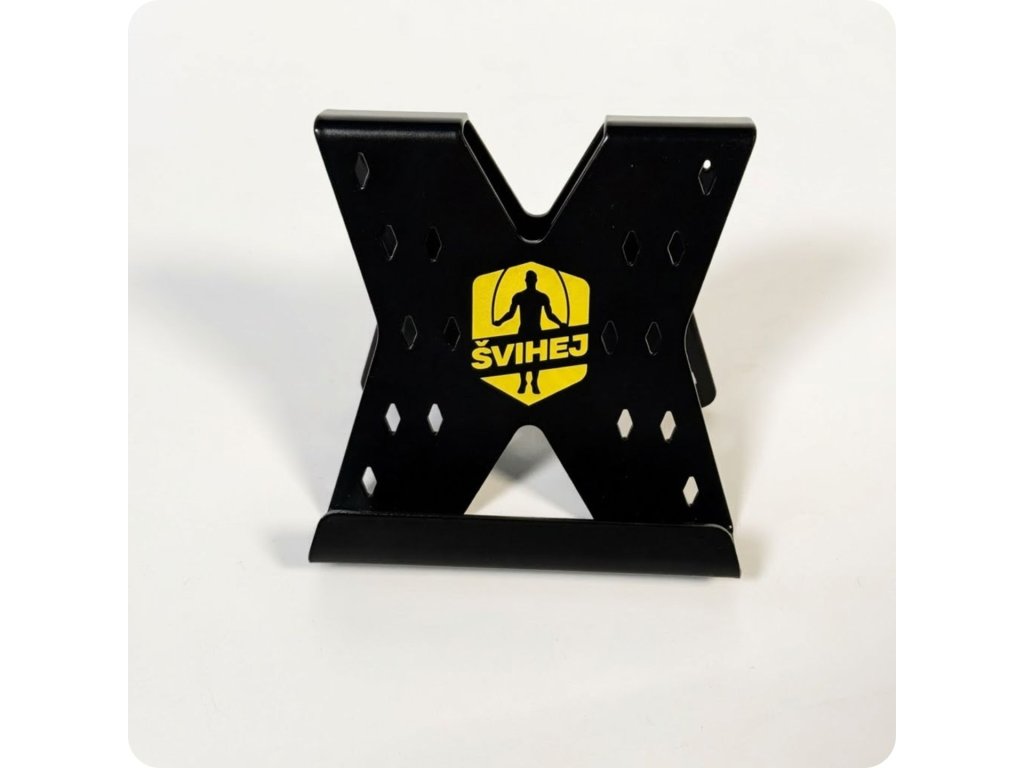 Stojánek při skákání - oceníš, když jedeš trénink podle videa, běží ti časovač nebo počítadlo přeskoků. Telefon vidíš, ale nepřekáží.
