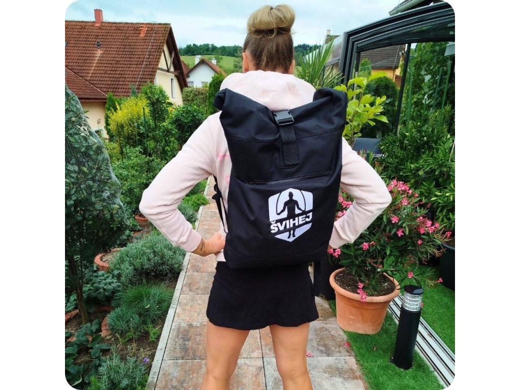 Ideální doplněk, když fičíš na workout, máš miliardu věcí a chceš je mít na jednom místě. A bonus? Styl. Batoh je trendy - je rolovací a zapíná se pomocí spony. Navíc je prostorný a jeho objem je 20l (dokonce se mi tam vlezl i velký stativ).