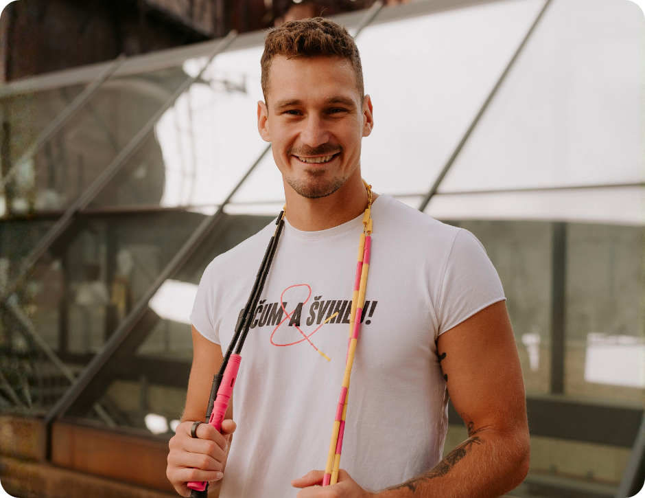 Na švihadle miluju nikdy nekončící možnosti triků, jejich kombinování v jedno flow, trojšvihy a motačky (wrapy). Extrémně rád poznávám lidi, kteří sdílí stejné nadšení ze švihadla jako já!