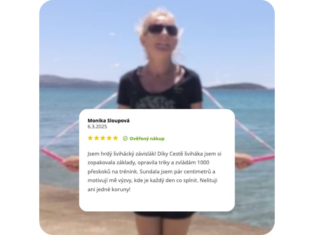 „Začala jsem skákat 10 minut denně a postupně jsem se dostala na 30–45 minut. Díky Cestě Šviháka jsem zhubla 28 kg. Nikdy jsem nevěřila, že švihadlo dokáže takhle změnit život."